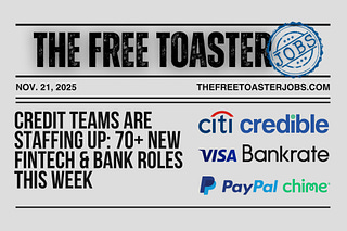 The Free Toaster Jobs curates real openings across credit, risk, product, data, and growth, with a focus on consumer fintech and lending. No noise. Just roles that signal where budgets and priorities are moving.