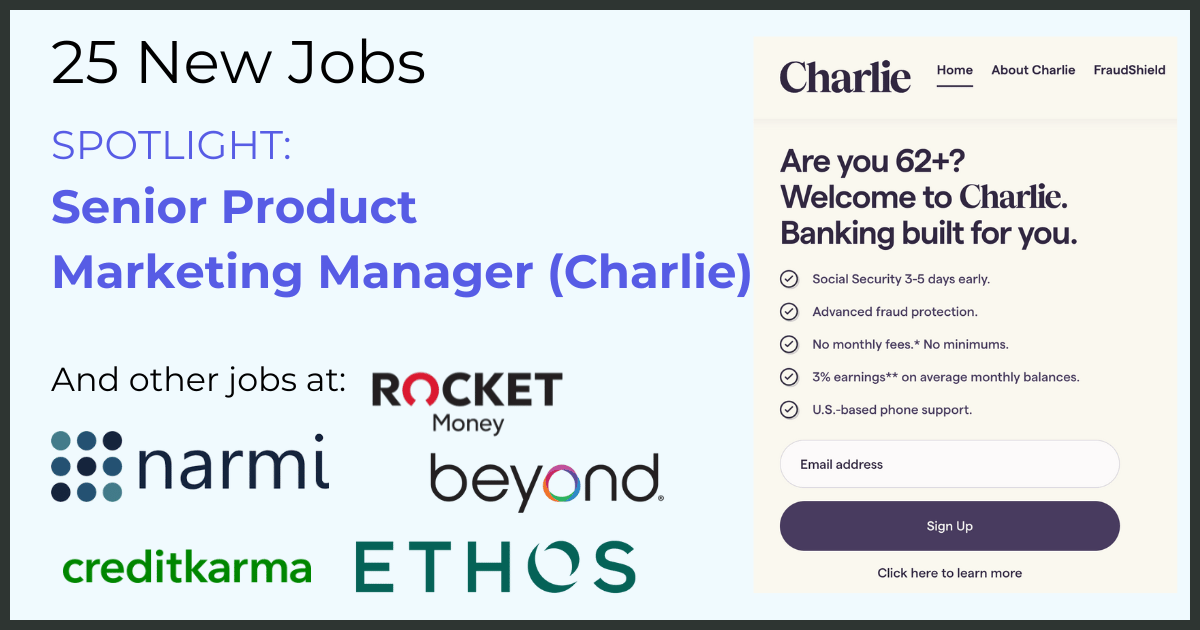 Plus can't miss roles at Narmi, Credit Karma, Beyond Finance, Ethos, Rocket Money, PayPal, Upstart, Step, and more...