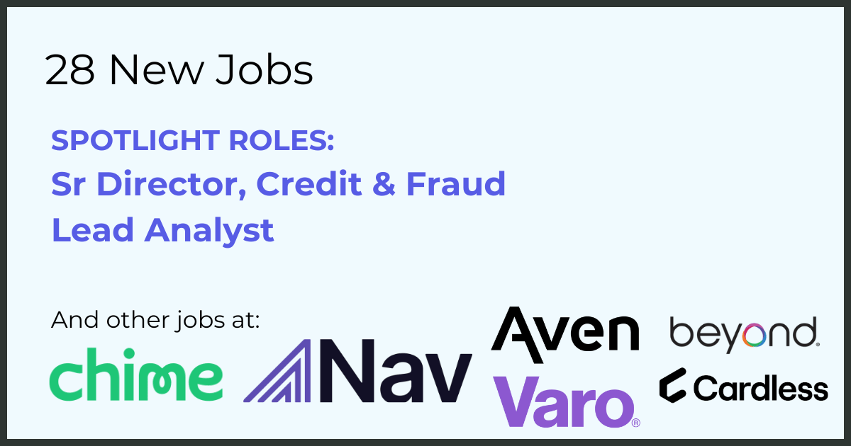 Plus can't miss roles at Chime, Nav, Aven, Varo, Beyond Finance, Cardless, and more...