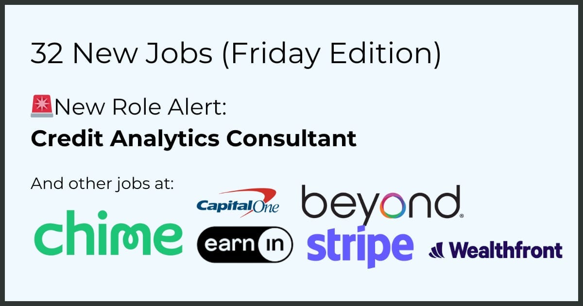 Plus can't miss roles at Chime, EarnIn, Beyond Finance, Stripe, Wealthfront, Capital One, and more...