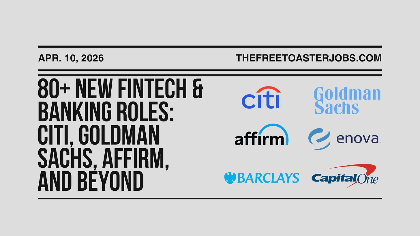 If you’re hiring across fintech, banking, or financial services, email the job details to info@thefreetoaster.com and we’ll include it in an upcoming Jobs Edition.