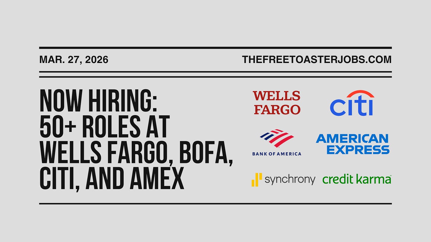 If you’re hiring across fintech, banking, or financial services, email the job details to info@thefreetoaster.com and we’ll include it in an upcoming Jobs Edition.