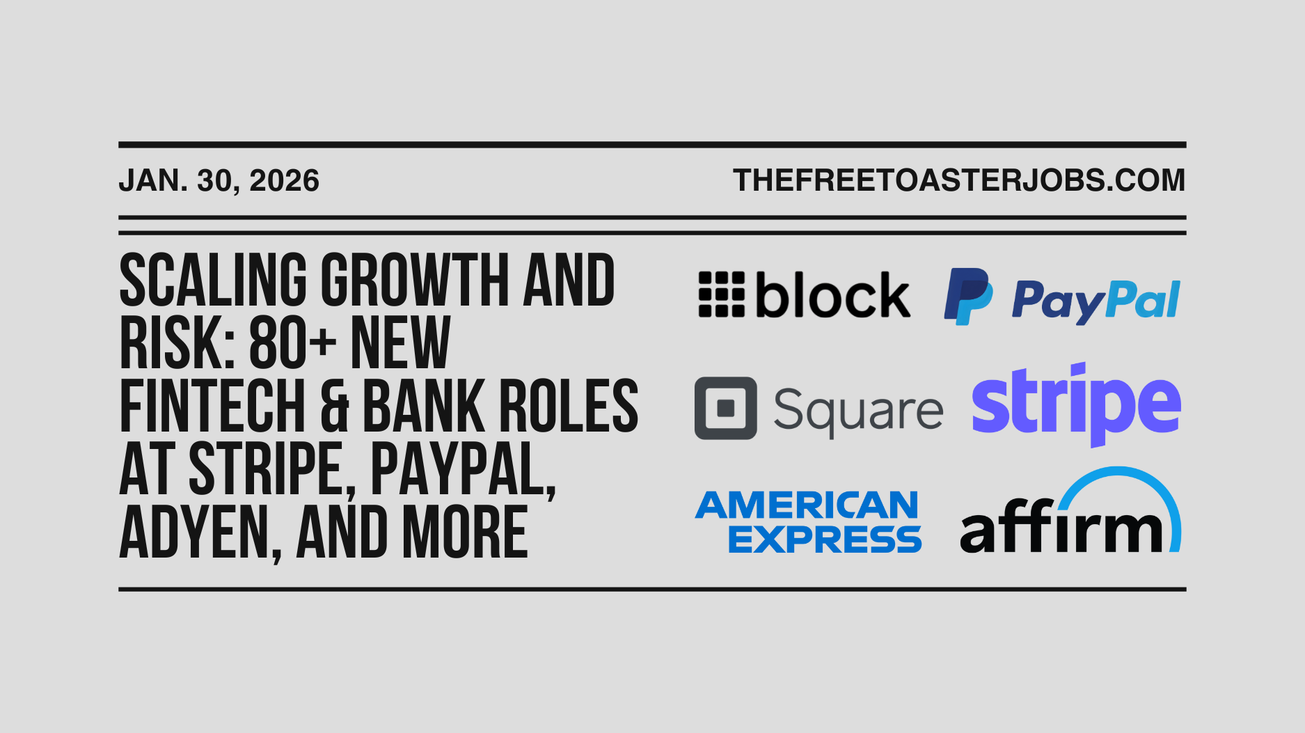 If you’re hiring across fintech, banking, or financial services, email the job details to info@thefreetoaster.com and we’ll include it in an upcoming Jobs Edition.