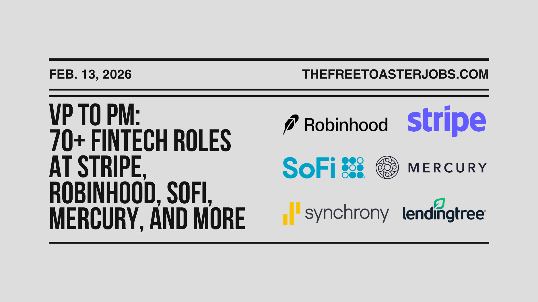 If you’re hiring across fintech, banking, or financial services, email the job details to info@thefreetoaster.com and we’ll include it in an upcoming Jobs Edition.